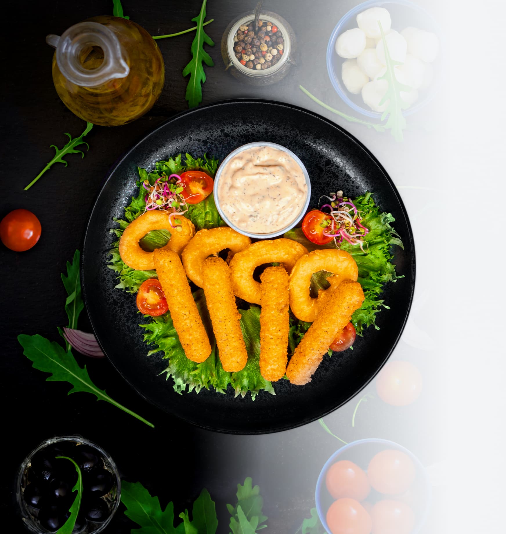 Kalmaarirõngad, mozarella pulgad ja tartar kaste